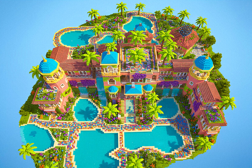 - Multiple swimming pools, waterfalls, and outdoor lounge areas