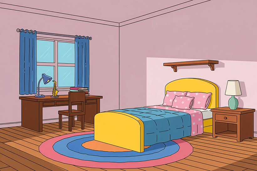 - Children’s bedroom with toys, posters & study desk