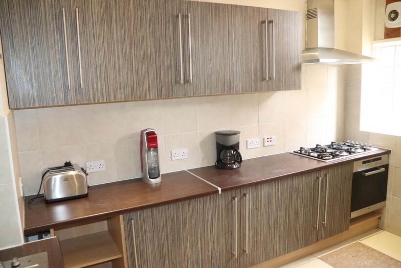 The house is fully furnished and comes with 8 double bed rooms of which 6 are en-suite. Each room comes with its very own double bed with a luxury memory foam mattress, wardrobe, desk, chair and LED TV. There is a large lounge area followed by an equally large social/dining area and a stylish kitchen. The kitchen is fully equipped to cater for 8 people and includes double cooking facilities, extractor fan, fridge/freezer, sink and a washer/dryer. There is generous storage space throughout this property.