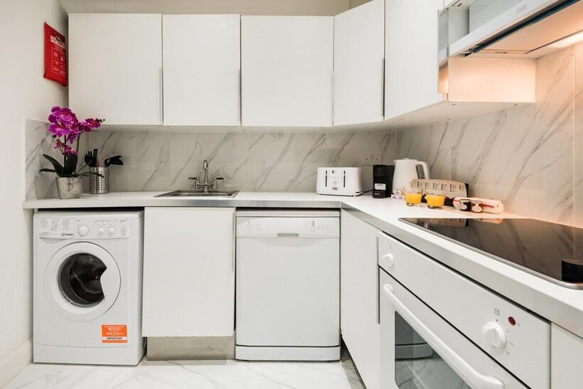 The apartment is also located just a short walk from Stamford Bridge, the home of Chelsea Football Club, The Queens Club, and green Normand Park. You may want to spend some time in Brompton Cemetery popular with its events. For enjoyable evenings, you can choose from numerous restaurants offering various cuisines such as Côte Brasserie, a modern all-day French brasserie serving regional specialties and traditional classics.