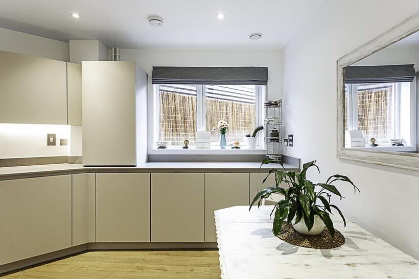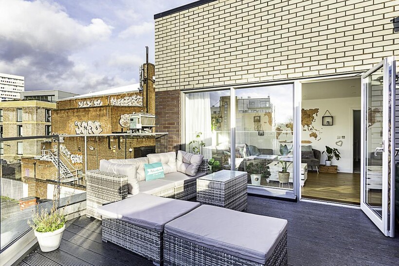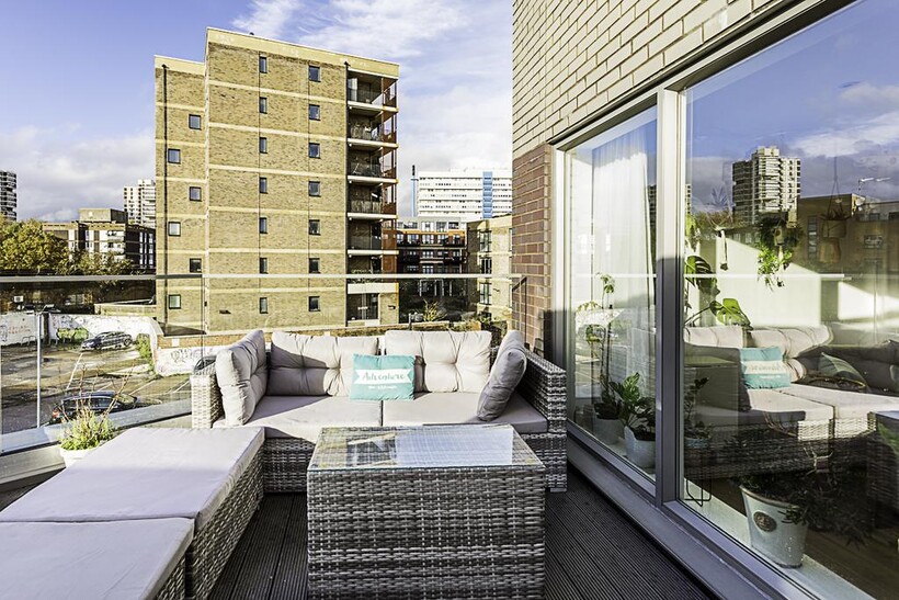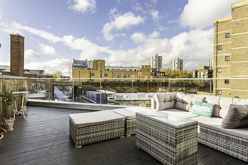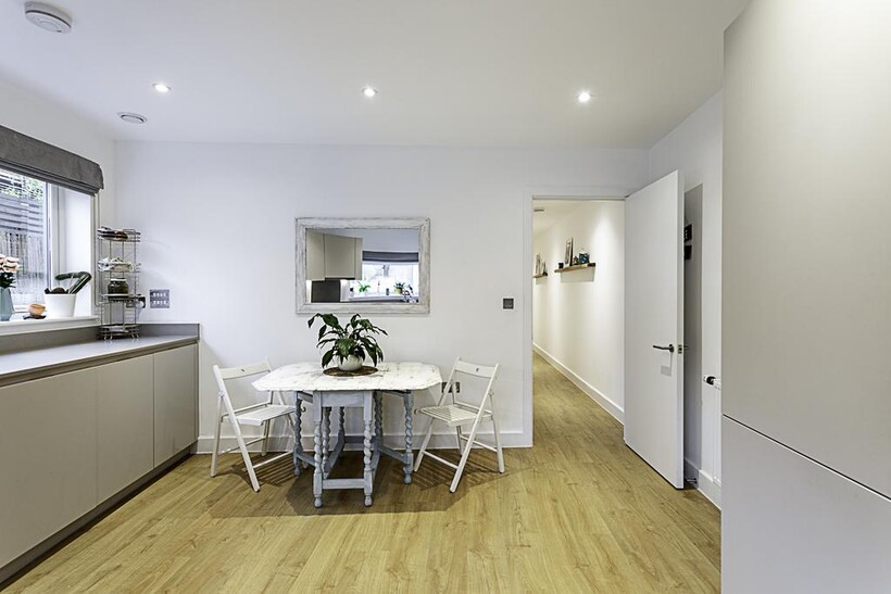 Located on the ground floor, this beautiful London house can comfortably accommodate up to eight people. The smoke-free property features a living room, four bedrooms, three bathrooms, a kitchen, a garden and a terrace.