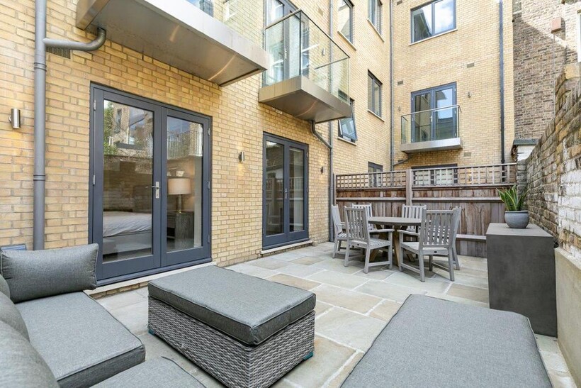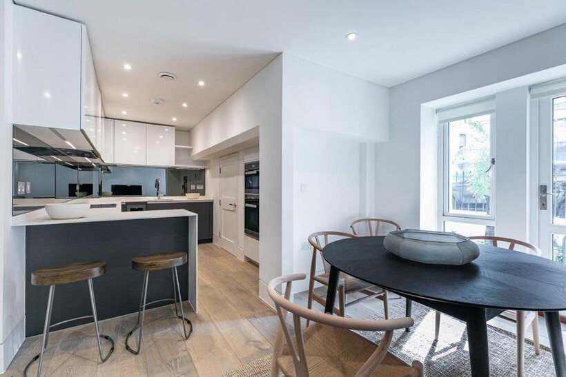 Finished throughout to a superlative standard, the property features elegant wooden floors , a private patio garden and a fully-fitted, bespoke kitchen. The fittings include under-floor heating throughout, Miele kitchen appliances and a central lighting control.