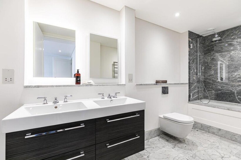 In terms of practicality, the flat has ample built-in storage, including a dressing room off the master bedroom, complimenting the contemporary finish. Similarly, the exterior features floor to ceiling double-glazed windows, maximising natural light and energy efficiency.