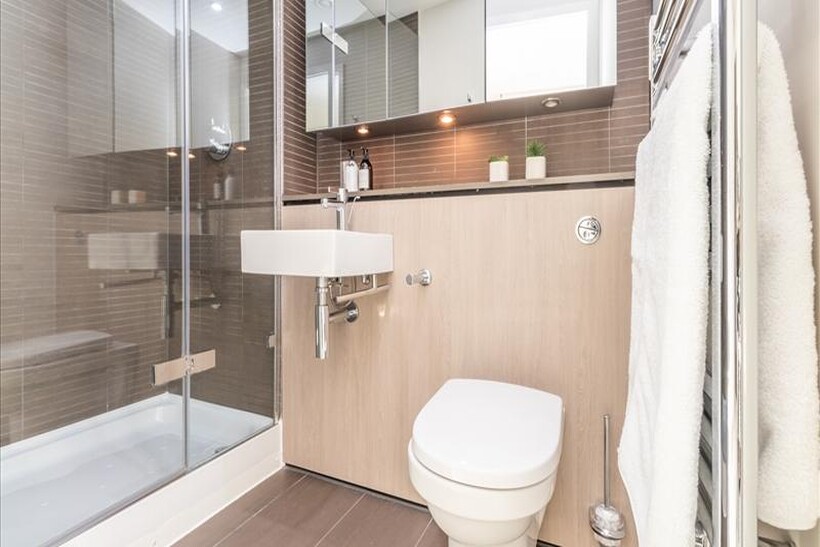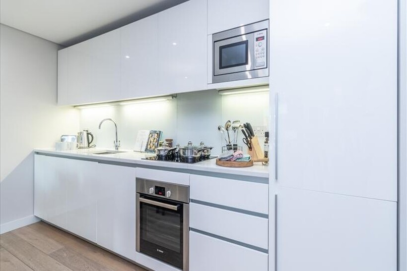 Interior designed 4th floor three bedroom twobathroom apartment is situated in a prestigious waterside secure new development with concierge services, lift.Apartment comprises of a spacious reception room with a sleek modern open plan kitchen and dining area, three double bedrooms, walk-in dresser to the principle bedroom, one shared bathroom, one en-suite bathroom, hallway and ample storage space.
