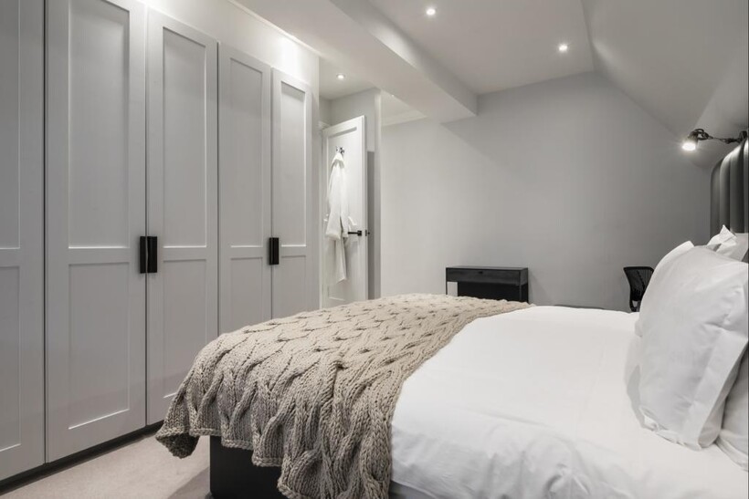 One of Mayfairs finest and rarest penthouse residences - approximately 1900sq feet in size this luxurious property is the perfect escape.The lift takes you up to the third floor where you will find the penthouse, which is split over our third and fourth floors, boasting views of North Audley Street and Hyde Park. The gorgeous living room features beautiful, high vaulted ceilings, an extra-large chesterfield sofa, working gas fireplace, and a large mounted flat screen TV. The dining table seats up to eight. From the living room via double French doors is a spectacular large outside private terrace facing the rear of the property.