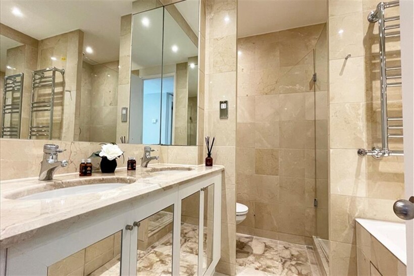 The primary bedroom benefits from a marble en-suite bathroom, with additional family bathroom in the apartment.