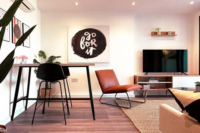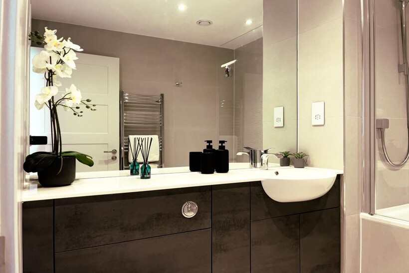 Step into urban elegance in our contemporary, brand new, 1-bedroom apartment, designed for up to 3 guests.Inside, the stylish interior creates a warm and cozy atmosphere. Enjoy restful nights on luxury mattresses with beautiful linen, courtesy of our hotel-grade linen service