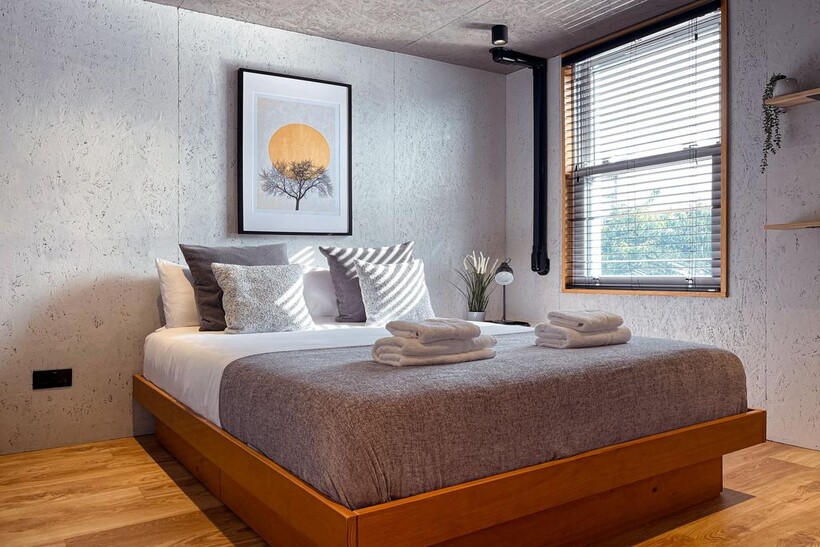 This hip and cool space has an industrial feel to it and set against an urban view of business parks, high rises and spaghetti junctions it feels like you could be staying in a mini warehouse in Berlin.This luxurious flat has two comfortable king-size bedrooms. Where you can unwind and experience tranquillity amidst the urban buzz