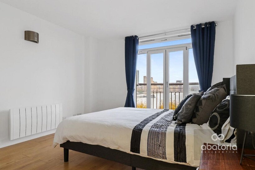 Stunning two bedroom, two bathroom apartment with panoramic views of the iconic River Thames. Immerse yourself in luxury living with modern amenities, spacious rooms and a prime location offering a picturesque riverside experience. The apartment, located on the 4th floor of the prestigious Dundee Wharf development, approx. 700 sq ft in size, offers a large reception room with access to the balcony overlooking the Thames and a modern semi open plan integrated kitchen leading on to a further balcony. The master bedroom has views of the river with plenty of storage and a modern en-suite bathroom, the second bedroom is a brilliant size with storage and there is a further modern family bathroom.