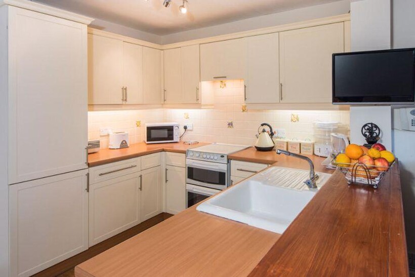 Kitchen/breakfast room 20' 3" x 12' 5" (6.19m x 3.79m) Fitted with a range of eye and base level units with worktops over. Inset ceramic sink with mixer taps, space for free standing gas cooker, space and plumbing for dishwasher and washing machine, integral fridge freezer, tiled splash backs, wood laminate flooring, French doors to garden with complement side panels, double glazed window to side, tv point, computer point, double glazed door to side, door to cloakroom, two radiators.