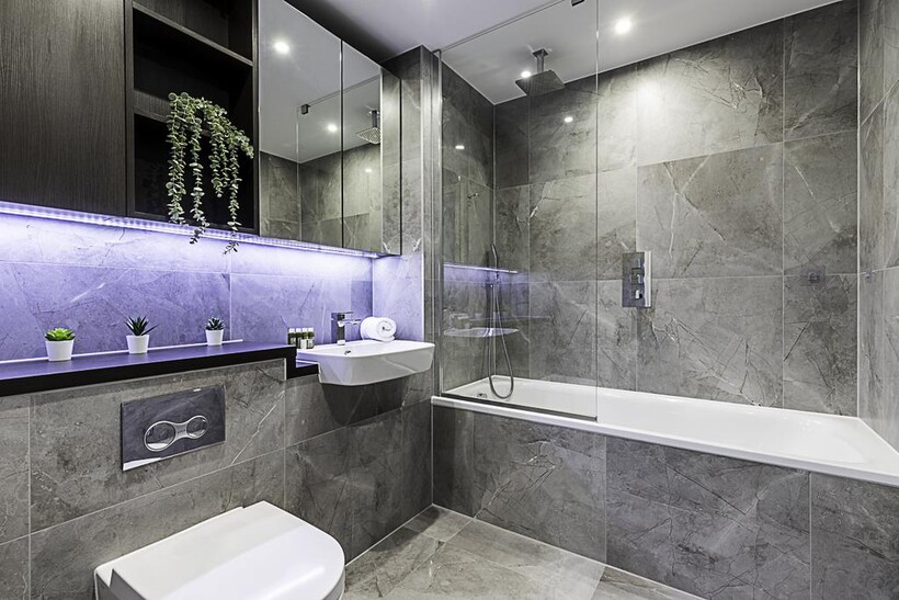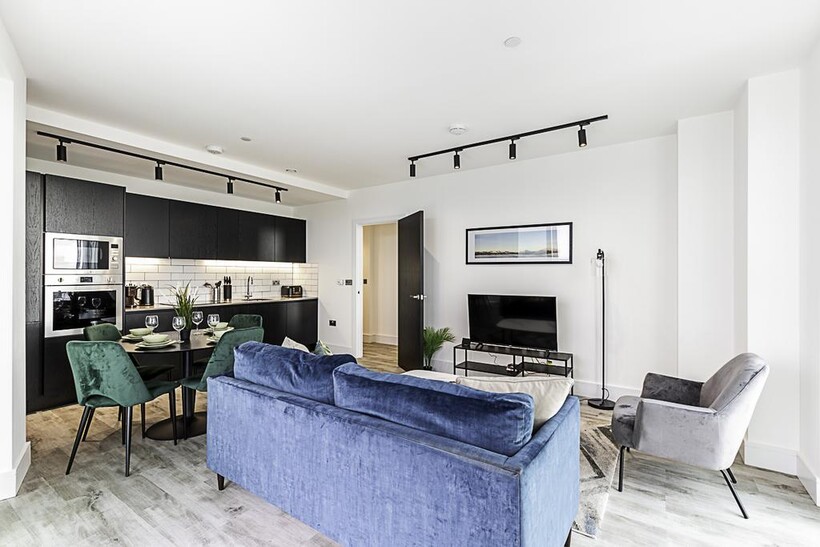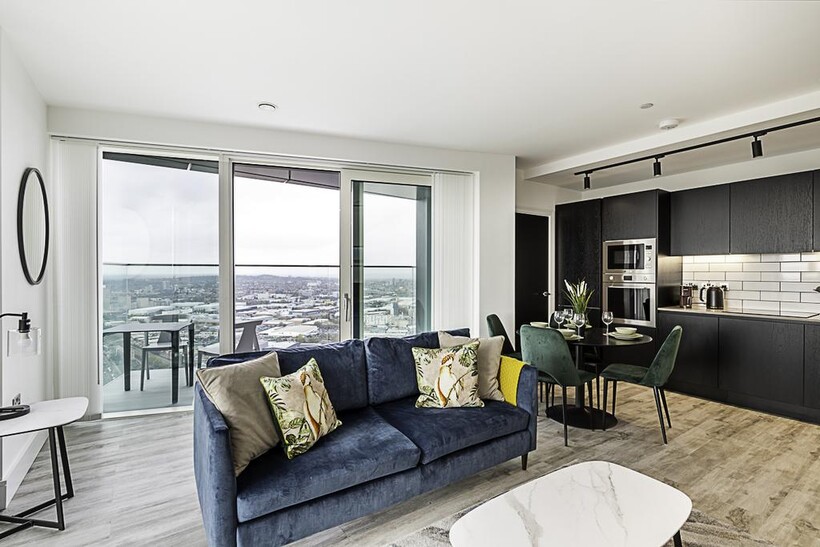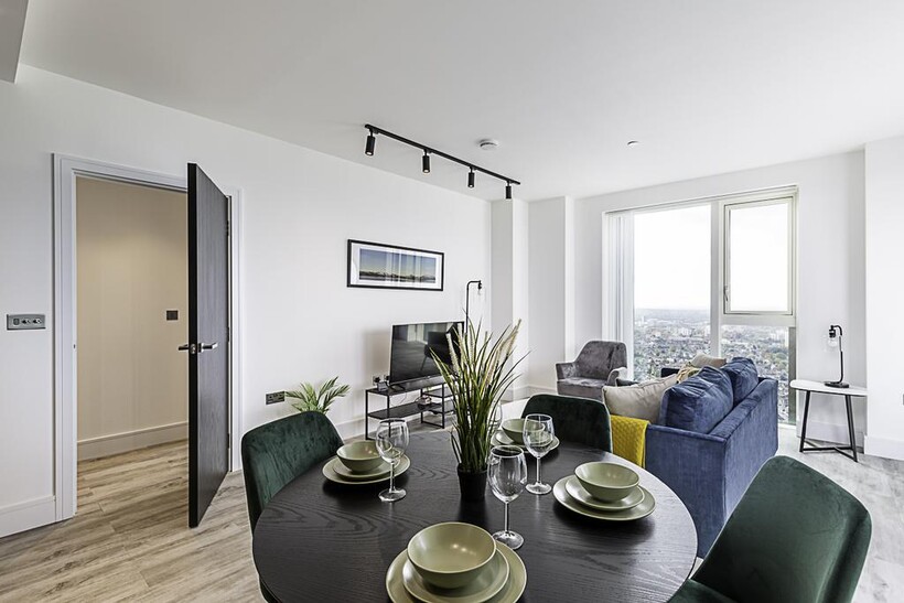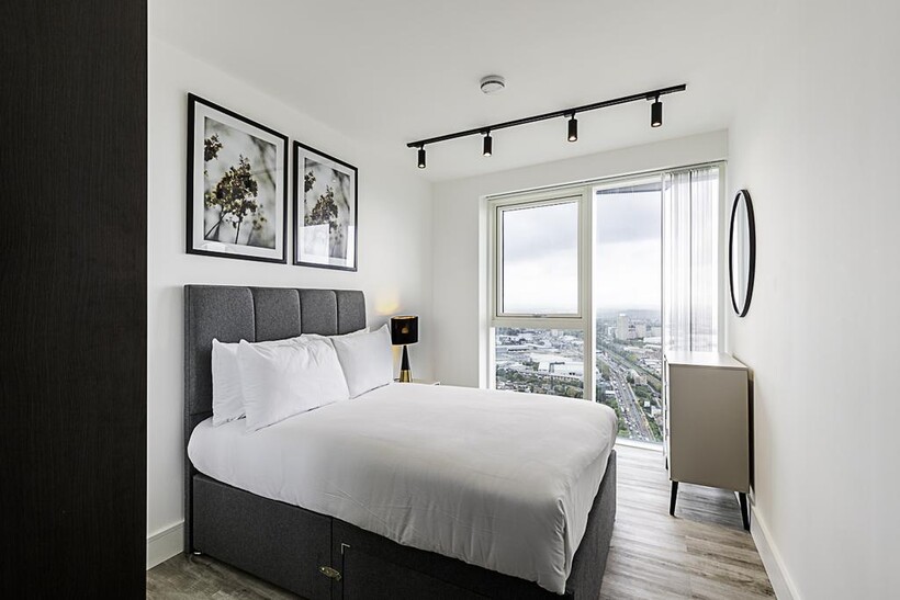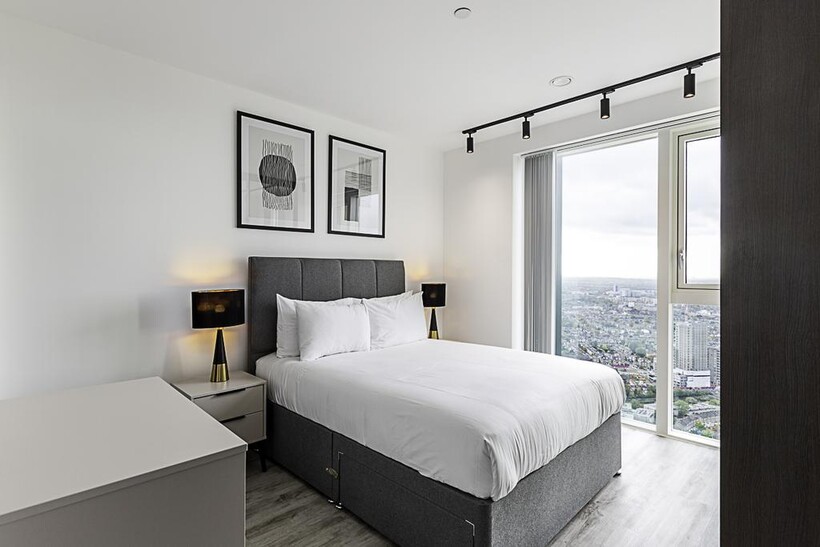 Located on the 43rd floor, this beautiful London flat can comfortably accommodate up to four people. The smoke-free property features a living room, two bedrooms, two bathrooms, a kitchen, and a balcony.
