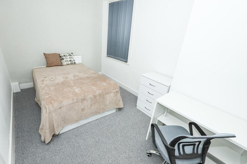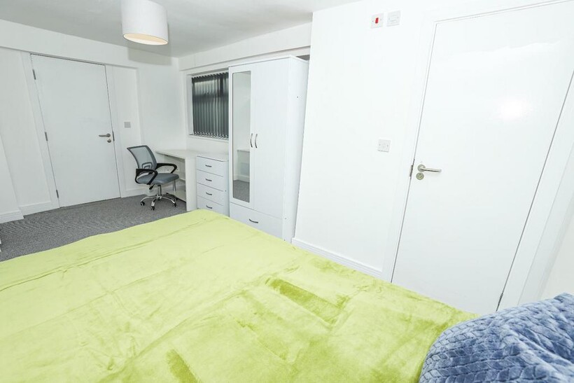 All rooms are fully furnished and newly carpeted, including the communal areas. Our units are provided with a television in the communal living area, pots, pans, dinner service and cutlery. The idea is that you arrive with your bag, towels and bedding, everything else is provided. The rooms include double bed, wardrobe, desk, chair, bedside cabinet and chest of drawers.