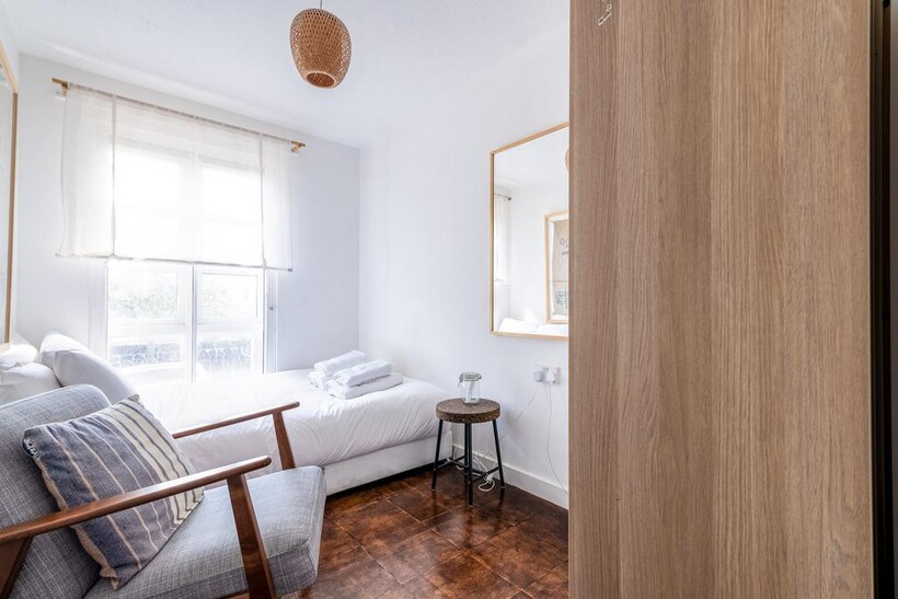 Located on the Ground floor, this beautiful East London house can comfortably accommodate up to 6 people. The smoke-free property features a living room with a garden, 3 bedrooms one bathroom, and a kitchen.