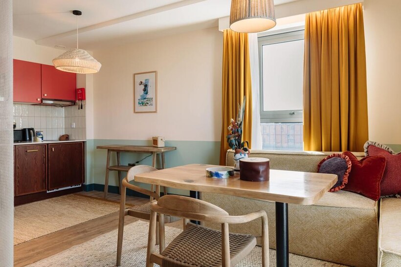 Our spacious Suite is the perfect optionif you're looking for truly indulgent stay or wish to stay with us for that bit longer. Our largest room in the hotel, with a size of up to 38 square meters, located on the higher floors to look out over the streets of Belfast.It features a comfy king-size bed and plush bedding to ensure a restful night's sleep. The fully equipped in-room kitchenette adds convenience to your stay, allowing you to prepare meals whenever you like