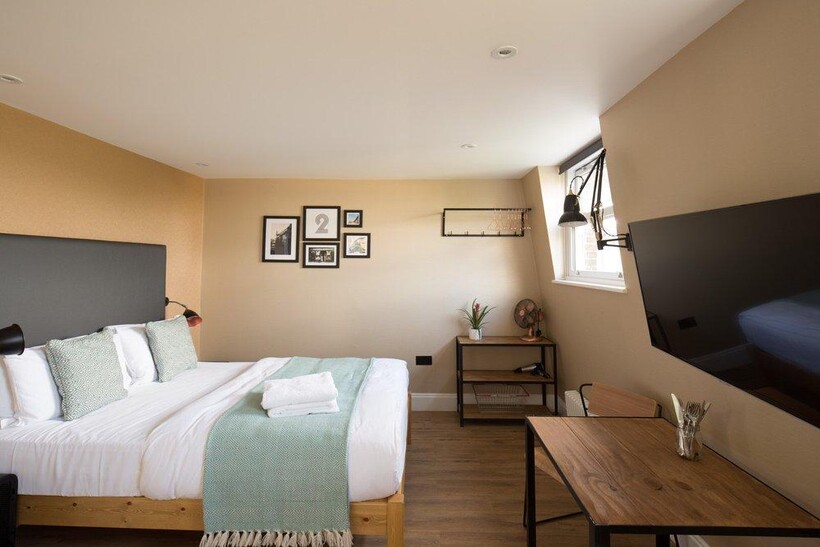 Sometimes less is more. The baby of the family, she’s small but perfectly formed. A queen size bed, kitchenette and 40″ TV . That’s not all, we have carefully crafted the design of the room to feel comfortable and functional so you can live in Hammersmith rooms like it’s your home