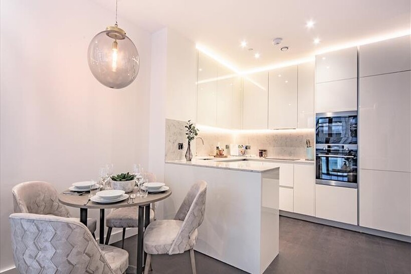 The apartment comprises a spacious reception area complete with Samsung Smart TV's with Bose sound bars incorporating a built in Amazon Alexa to control the apartments lighting, TV and heating systems. The reception room is open plan with a fully fitted kitchen featuring integrated AEG appliances with floor to ceiling windows. The apartment offers two double-bedrooms, two-bathrooms, one of which is an en-suite bathroom from the master bedroom as well as a private balcony accessed via the reception area and one of the bedrooms. The apartment also benefits from ample storage space.