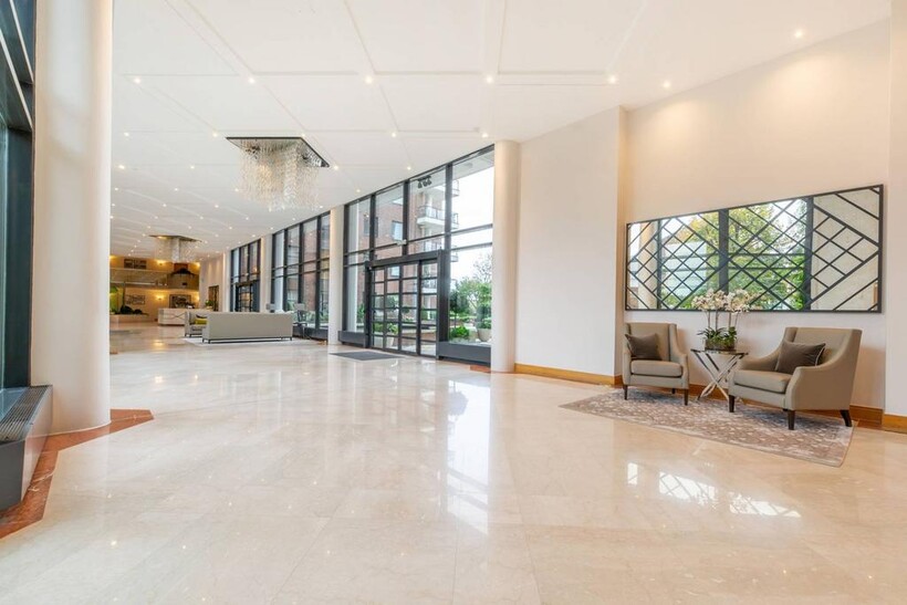 Secure entry, 24hr concierge and lift accessGenerous reception room with door to river facing balcony