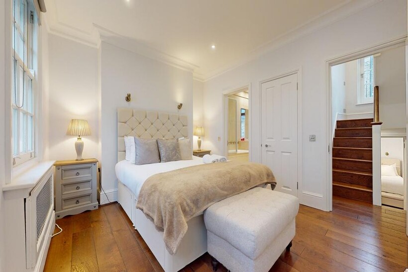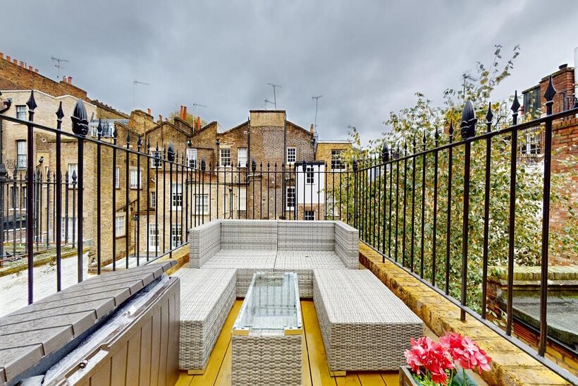 A picturesque balcony nestled between the 4th and 5th floors provides sweeping views of Montpelier Walk. The house is situated on a private residential street within walking distance of a plethora of cafes, restaurants, and shops, including the iconic Harrods.
