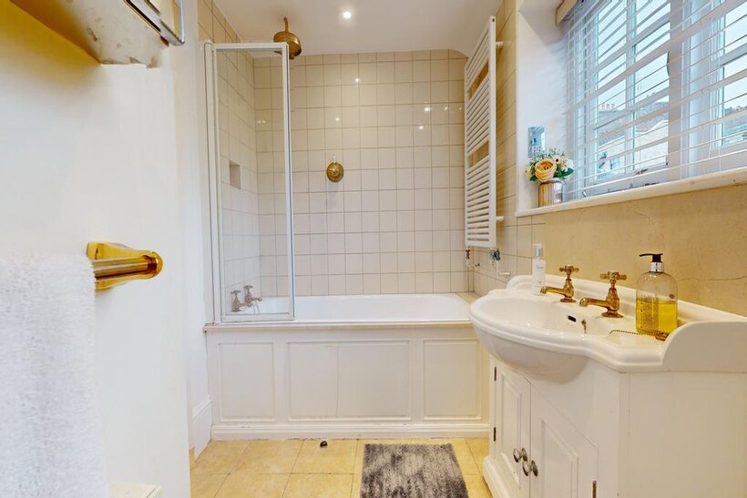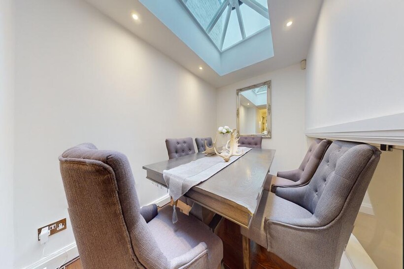 The ground floor exudes grandeur, featuring a splendid reception room complemented by a detached dining area and a separate living room complete with a flat-screen TV. Each floor of this residence is graced with a bathroom, while the bedrooms are thoughtfully distributed across three levels, each offering ample storage space and en-suite bathrooms.