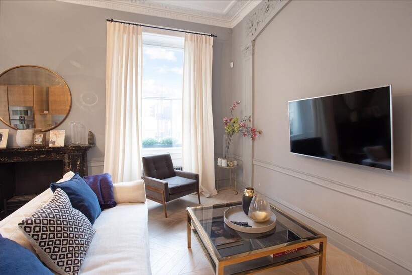A stunning raised ground floor apartment set within an elegant period building with access to the large garden square with 1004 sq ft of living space.The apartment has grand proportions that you would expect to find with such a building. With 3.7 m height ceilings with original victorian cornicing throughout the apartment.Upon entering to have a generous hallway that leads to a large open planned double reception room with kitchen and dining area.With three double height windows and views to one side towards the square.There is a large Victorian fireplace in the middle of the room and parquet flooring throughout.The Kitchen is stylish and modern with an island cooker with storage / integrated Gaggenau appliances. There is chevron oak parquet flooring throughout the principal rooms, new fibre optic cabling and integrated Sonos system. The large double bedroom has large fitted wardrobes with ample storage along one of the walls along with study/ office area again with double height windows overlooking the square. Plus There is a well designed large shower room with Italian Carrara marble. And a small separate storage vault.The square gardens themselves are outstanding with a tennis court and gardens to enjoy without the year.Located in Pimlico with its access to its amenities and restaurants.With excellent transport with Pimlico underground station and Victoria station nearby and access to Gatwick express.