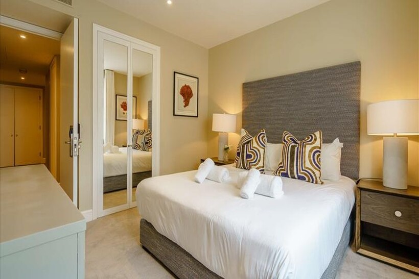 Residents of the apartment have access to various amenities, such as a TV room, lounge, day-space, and terrace, which are exclusively for residents. The bedrooms are spaciously fitted with king-size beds and bespoke mirror wardrobes, making them comfortable and practical.