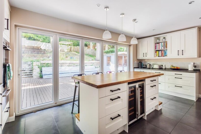 A substantial detached family home, offering hugely impressive three storey, six-bedroom, three reception room, three bath/shower room accommodation, occupying a cul-de-sac location on the prestigious south-side of Woking, within walking distance to the town centre & station. Since the current owner’s occupancy, he has made numerous changes which include new second floor accommodation (bedroom 6 with en-suite shower room), new kitchen (2014), which features an extensive range of base and eye units and matching drawers, incorporating Bosch integrated appliances, including oven, grill & five ring hob. There is a central island unit, Belfast sink and bi-fold doors to the rear garden. New windows were also installed and engineered oak flooring laid throughout various reception rooms and the hallway. The family bathroom, en-suite to bedroom one and the ground floor cloakroom were all replaced circa 2015.