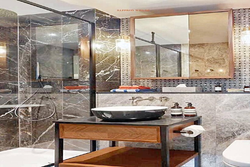 Bespoke Bathroom With Basin Vanity Unit, Feature Floor Tiles
