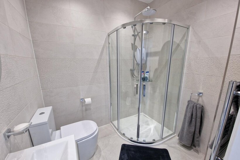 Lastly, you come to the gorgeous bathroom. Fully tiled with a full size bath and over the head shower, luxurious fixtures and fittings, with all the modern features this apartments deserves,