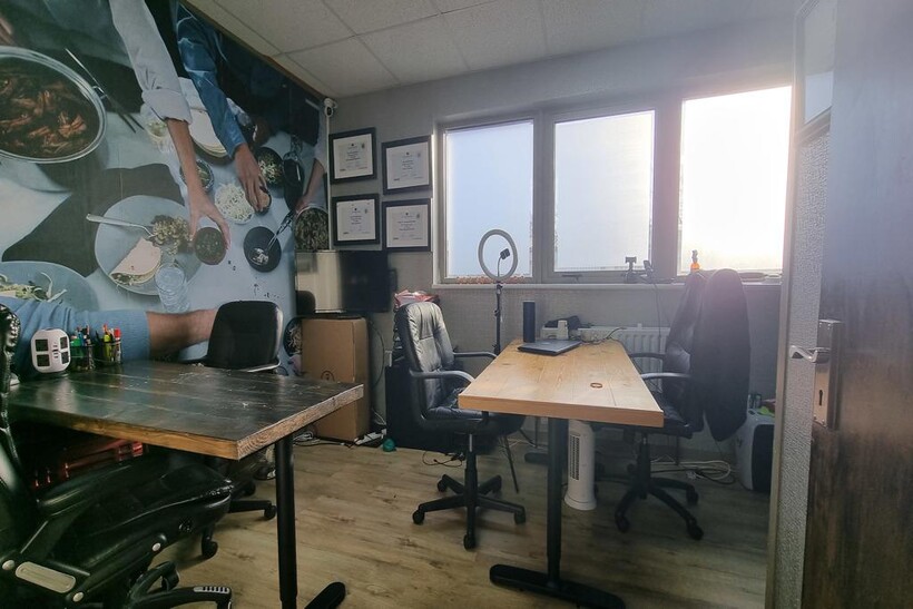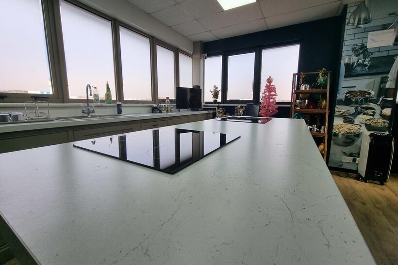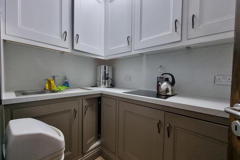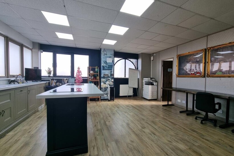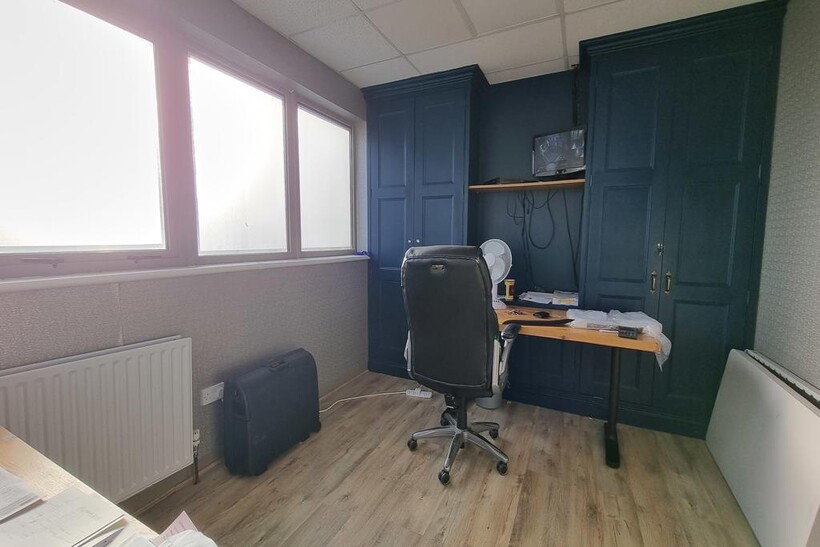 Ascend to the first floor, four separate works spaces await with an open plan office space including kitchen facilities.