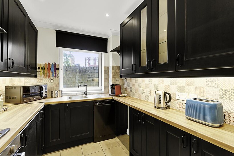 The accommodation features two bedrooms - one with a luxurious king-size bed and the other with a super king-size bed, ensuring a restful night's sleep for all guests. The accommodation has two generously sized bathrooms. The flat is well equipped for remote working with a super fast 500 Mbps fibre Internet connection, a dedicated working desk and a Virgin Media TV connection with 180+ channels included.