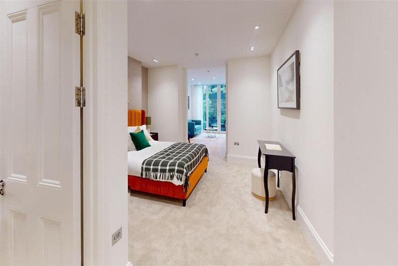 Recently refurbished duplex with outside space. Set on the ground and lower, this two/three bedroom apartment is approximately 1,910sq ft. The ground floor comprises a double reception room, modern kitchen, guest cloakroom, and a terrace. Downstairs offers an en-suite bedroom, utility room, study/third bedroom and an opulent master suite with en-suite bathroom, walk-in wardrobe leading through to a sitting room and private patio. Available, furnished.