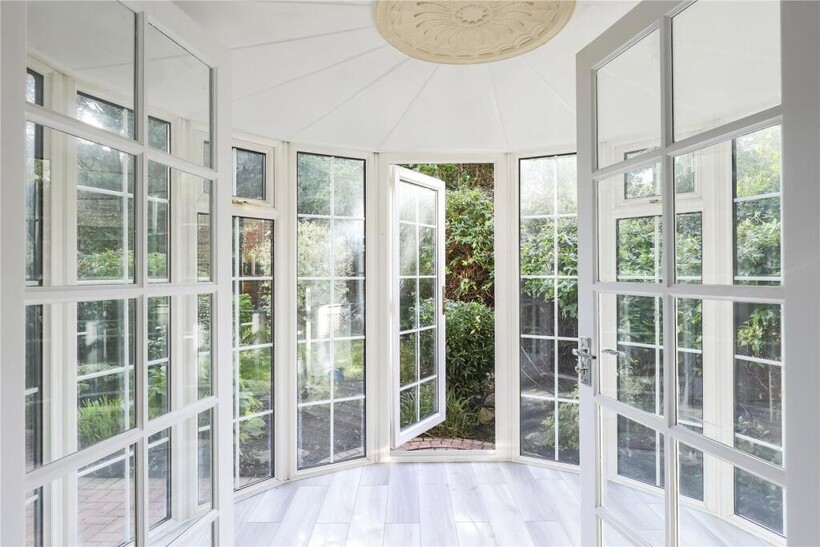 Entering through the lobby, you are welcomed into a warm and inviting reception hallway that leads to a formal lounge, kitchen/breakfast room, and dining room. Just off the dining room is a petite conservatory leading out onto the patio and mature garden.