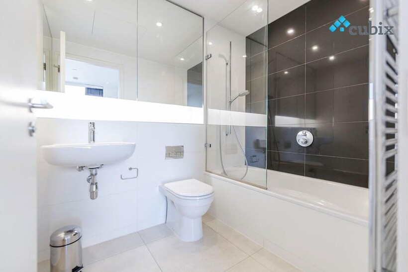 The apartment has been finished to the highest of modern standards. There is a spacious entrance hall flowing into a dining area and a large open-plan reception room and kitchen. Both bedrooms are good-sized doubles and have a similar aspect to the reception room. There are one en-suite shower room and a second guest bathroom.