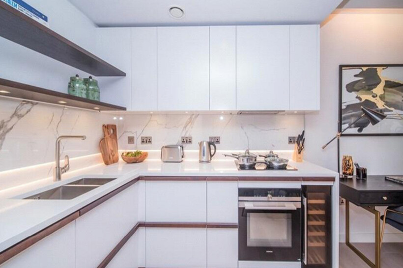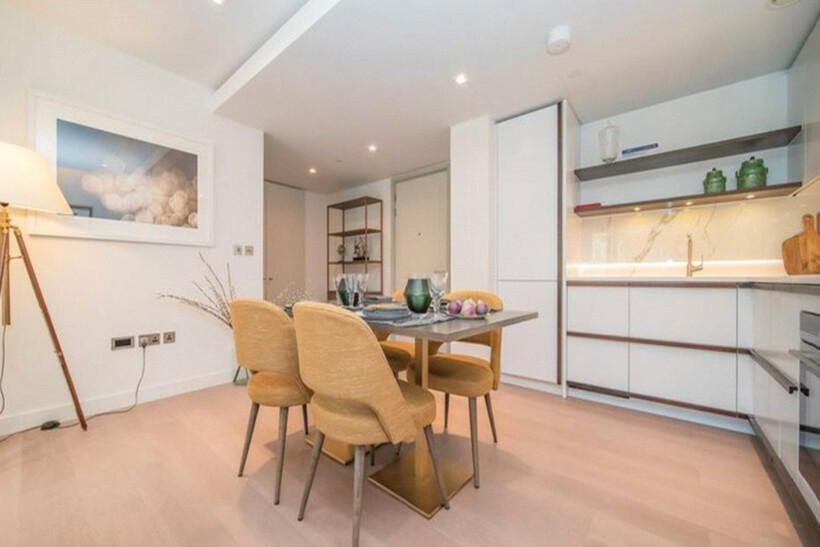 A luxurious interior designed one-bedroom 1st floor apartment set over 561 SqFt comprising a large open-plan reception room leading onto a private balcony. The fully integrated kitchen with appliances from Siemens and Miele including oven and induction hobs, large fridge freezer and dishwasher and wine chiller all inset into a composite stone work tops.