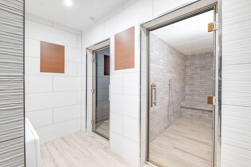 Comprising of bath with shower head over, separate walk-in shower unit and heated towel rail.