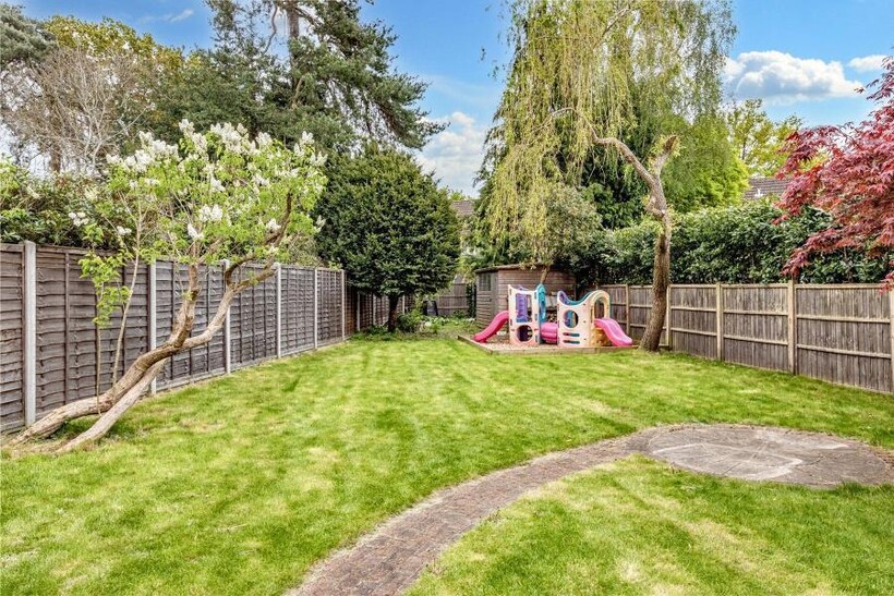 Outside, a sizable paved driveway offers ample off-street parking and access to the garage. The attractive landscaped garden, mostly laid to lawn, includes a generous patio area ideal for outdoor entertaining and dining.