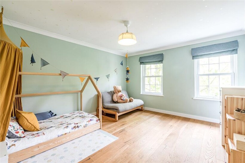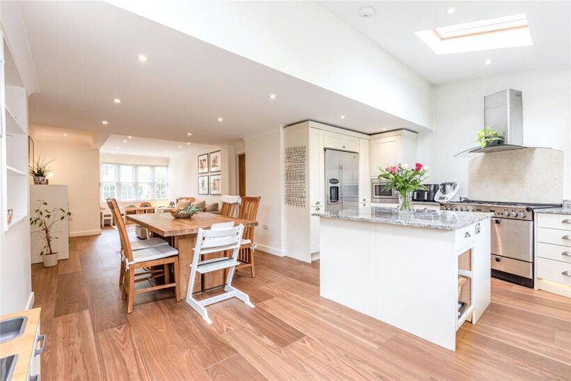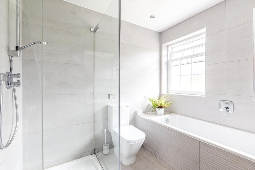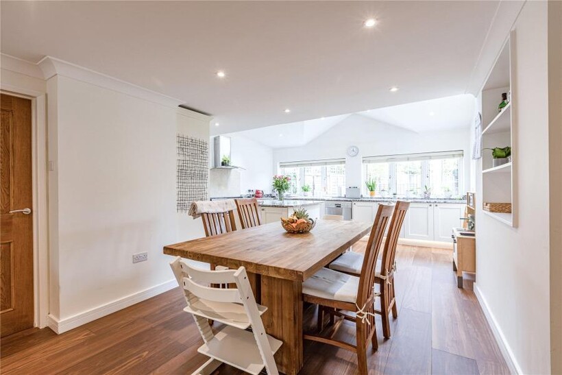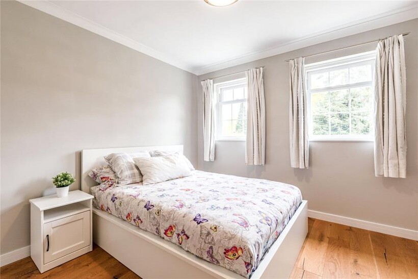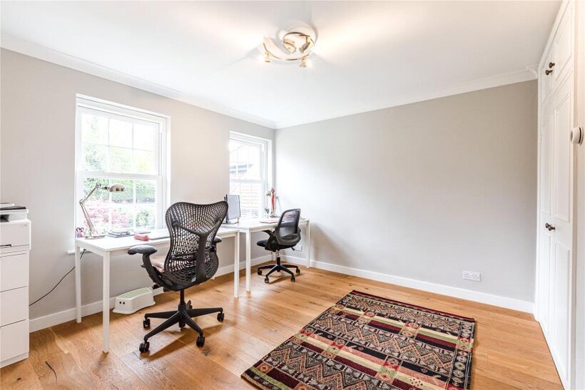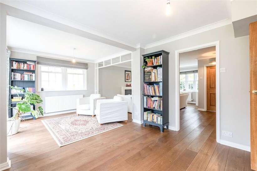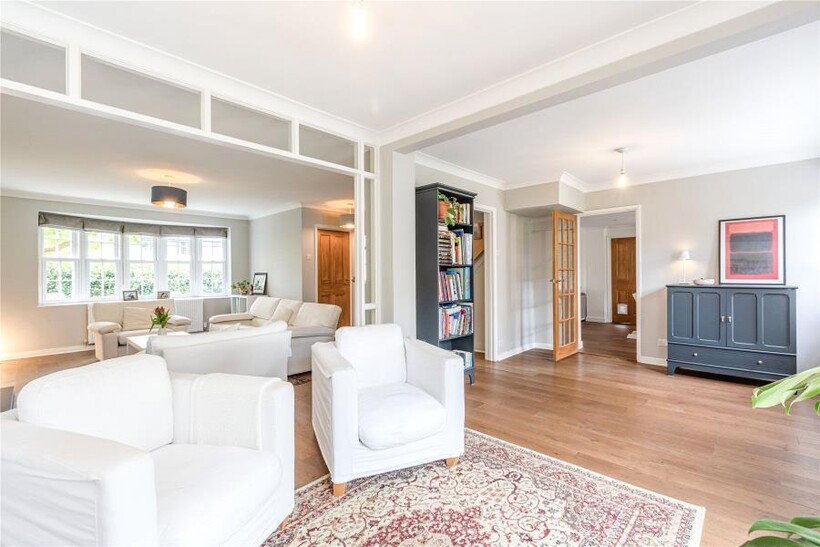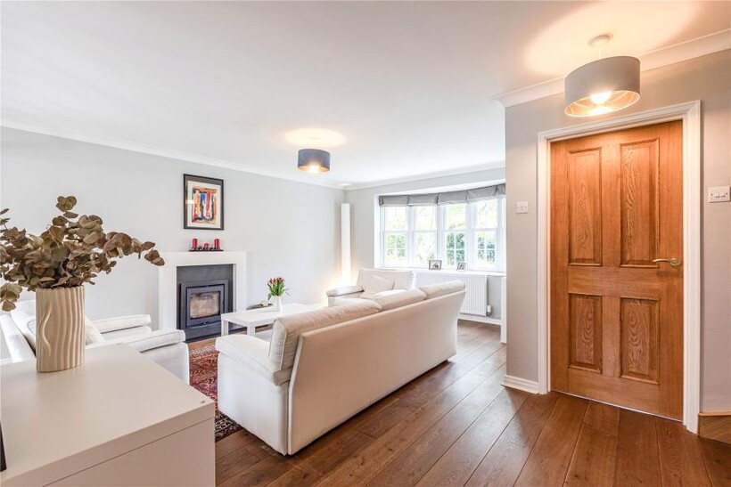 Conveniently located on one of the most sought-after private roads in Woodham, this stunning Georgian-style home offers four double bedrooms and spans approximately 2240 sq. ft. The property features a brand-new family bathroom and en-suite, a new heating system, and underfloor heating throughout the house, except in the living room. Solid wood flooring enhances the upstairs and most of the downstairs areas.The ground floor boasts versatile living spaces, including a light-filled, spacious living room with bi-fold doors leading to a separate dining room, a versatile family room/study, and a contemporary kitchen/breakfast room with integrated appliances and an island. Additionally, there is a utility room with access to the garage and a convenient downstairs cloakroom.