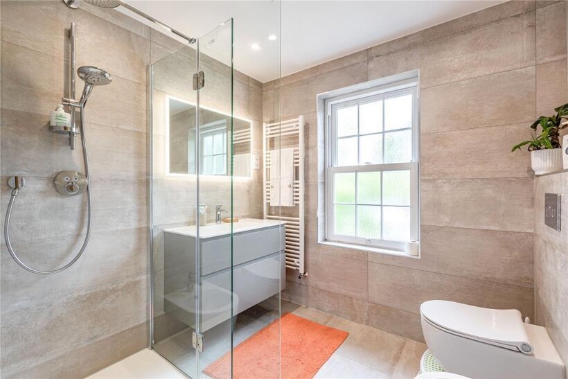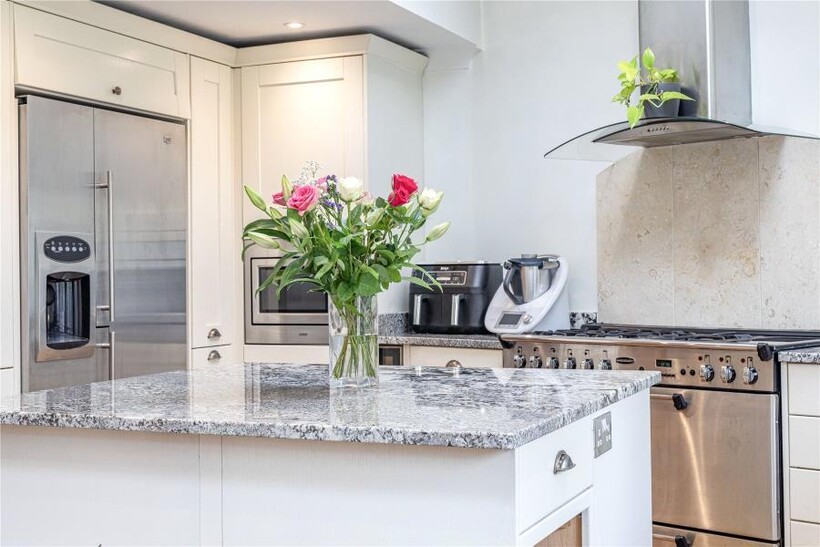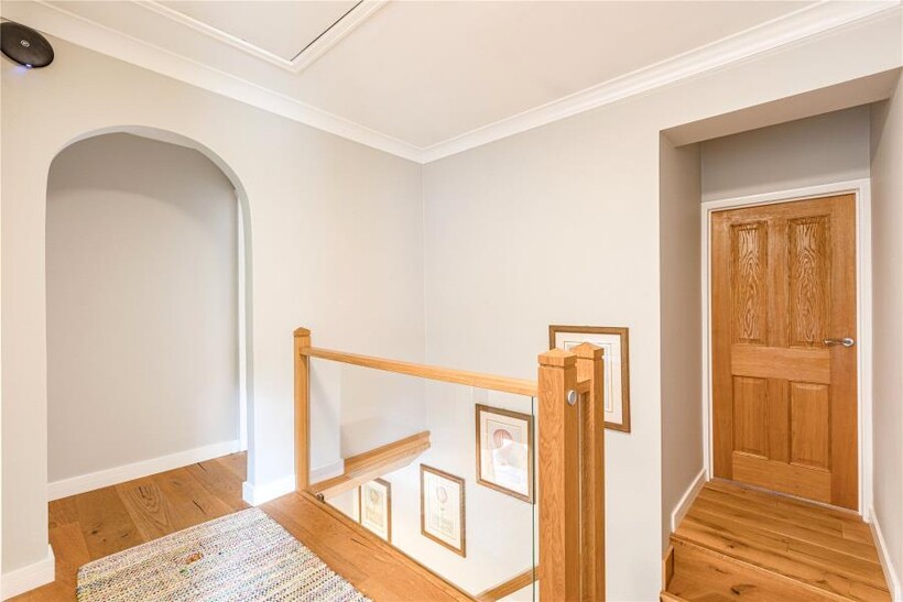 Upstairs, the impressive main bedroom features fitted wardrobes and an en-suite bathroom. Three additional generous double bedrooms, two with built-in wardrobes, are serviced by a modern family bathroom.
