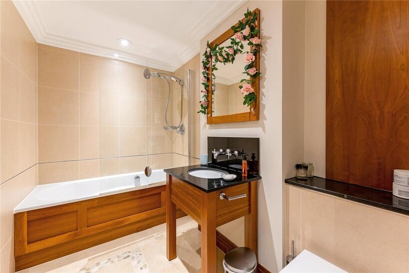 The property is well suited for flexible living with a spacious reception hall, an open plan living room with feature fireplace, dining area and fully integrated kitchen with a central island and doors on to a balcony overlooking the beautifully maintained communal grounds. There is an excellent principal bedroom suite with a bathroom, walk in dressing room and a door to the balcony overlooking the grounds and tennis court. To complete this floor there is a further bedroom with fitted wardrobes and an en suite bathroom, a guest cloakroom, utility room, coats cupboard and an internal lift to the upper level.