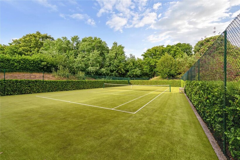 The beautifully manicured gardens and grounds of about 25 acres include a water garden and an all weather tennis court.