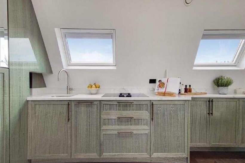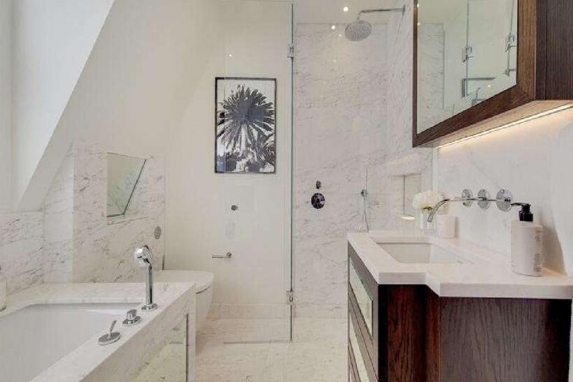 The East Penthouse at Prince of Wales Terrace is an opulent duplex apartment in a stucco-fronted Victorian building in Kensington, boasting 1,181 sq. ft. of luxurious living space with spectacular views over Hyde Park. This elegant, high-spec apartment features:Bedrooms and Bathrooms: Three bedrooms, each with ensuite bathrooms equipped with natural marble, bespoke vanity units, mirrored cabinets, bathtub or walk-in shower, Aquavision TVs, Zuchetti Italian designer chrome ware, 200mm rainfall shower heads, and Toto style VitrA V-care WC.