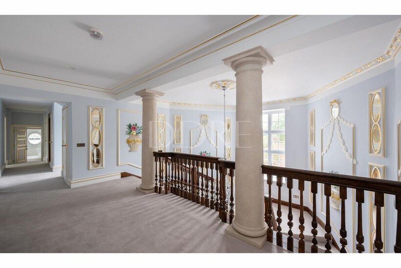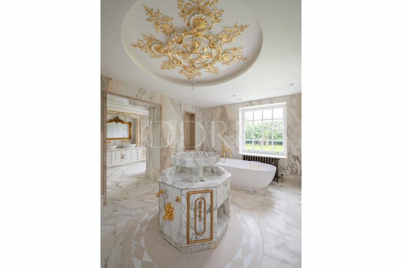 Inside there are 12 bedrooms and 11 bathrooms with marble detailing and roll top baths. Many rooms offer separate walk-in wardrobes and generous dressing areas.