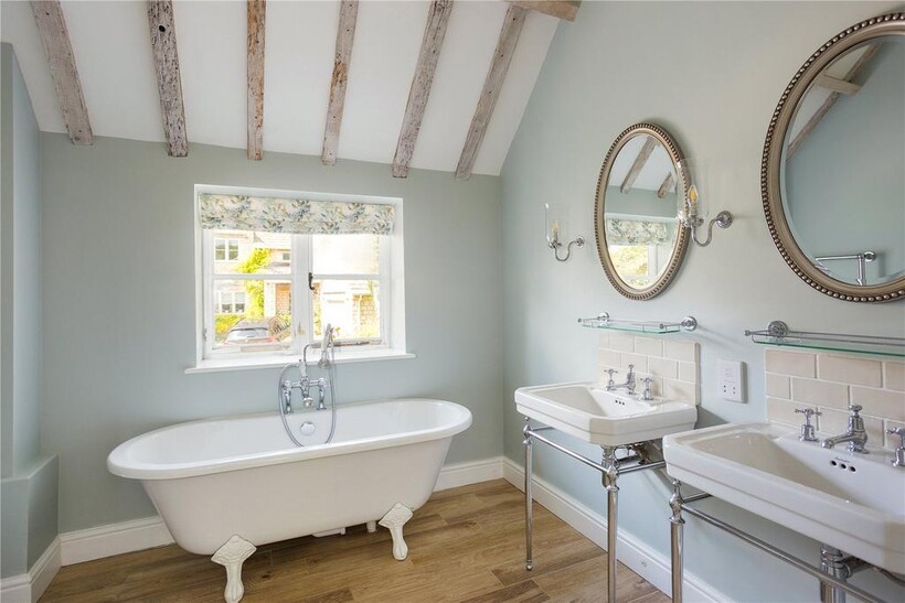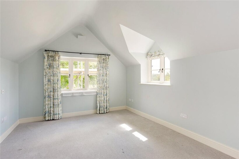 The principal bedroom has a vaulted ceiling, built in wardrobes and a beautiful ensuite bath and shower room, with a roll-top bath and double sinks. The views from this room are outstanding as it captures the rolling countryside beautifully.