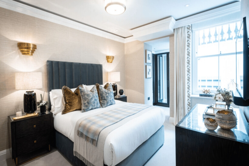 Regents Residential are delighted to offer a newly refurbished exceptional two-bedroom, 1,035 sq. ft apartment arranged across the courtyard and ground floor levels of a boutique super prime building. The apartment boasts two terraces on each level; one accessed via the reception room and the other via the primary bedroom. The reception room and kitchen are open-plan, featuring panelled walls, chandelier, and an ornate up-lighting coffer-coved ceiling.The primary bedroom has a range of built-in wardrobes, a full marble en suite bathroom with underfloor heating, mirror-fronted cabinet units with integrated demister, and a door leading to the private courtyard. The second bedroom also offers a range of built-in wardrobes and an en suite marble shower room.The hand-built kitchen features bespoke Calcutta marble from Italy, and is equipped with Miele appliances oven, warming drawer, microwave, induction hob, wine cooler, and dishwasher. Dual-aspect doors open out to the private terrace. Furthermore, the apartment benefits from WIFI, Samsung smart TVs with Sonos soundbars and comfort cooling.