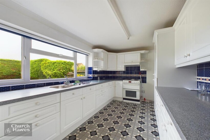 Kitchen - 4.37m x 2.51m (14'4 x 8'3) - Double glazed window to rear, radiator, sink unit with mixer tao set into worksurfaces, fitted base and wall mounted units, tiled splash backs, built in cupboard, built in fridge/freezer, coved to ceiling.