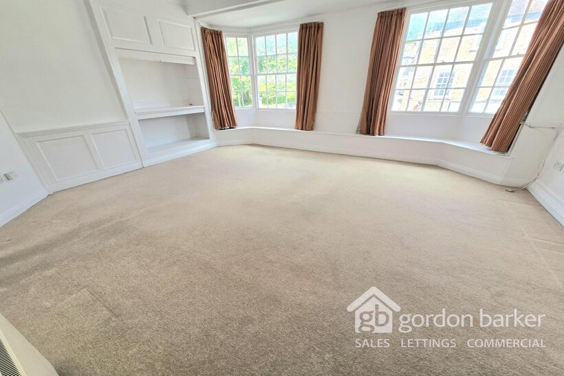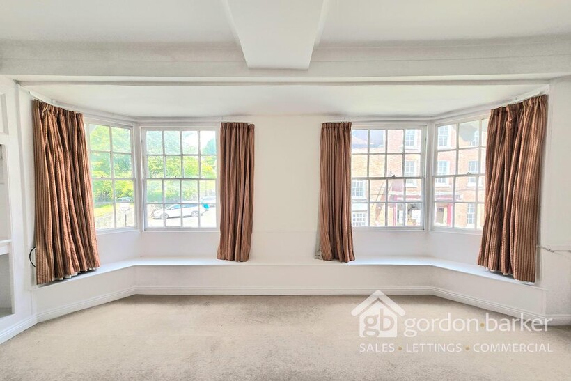 Accessed from the rear of the high street this lovely airy, flat looks over the front of the property and offers a large sitting room with feature brick fireplace surround, large front facing windows and built in window seats too.
