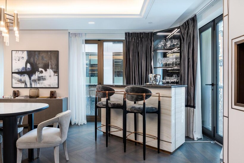 Clarges Mayfair offers twenty four hour concierge service, cinema, twenty five metre swimming pool, private treatment rooms, sauna, steam room, spa and gym.