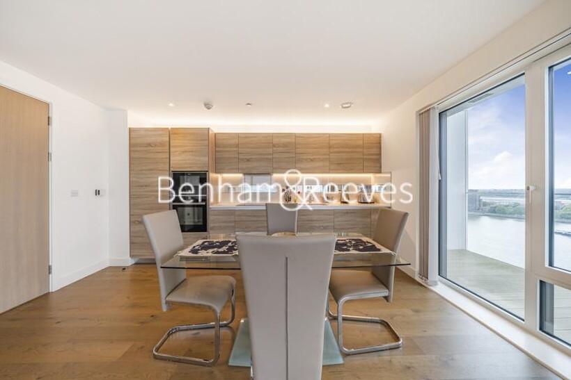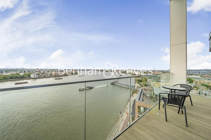 Luxury spacious duplex apartment set in Hampton Apartments on Duke of Wellington Avenue, situated within the latest phase of the sought-after Royal Arsenal Riverside, Waterfront development. The bright and well-proportioned living space comprises reception with wood flooring and access to the balcony, with stunning views over the Thames. There is a fully fitted kitchen with integrated Neff appliances, including dishwasher, microwave, and fridge/freezer. The washer/dryer is homed in the utility cupboard, with storage space. The main bedroom benefits from good storage space and an en-suite shower room, the second bedrooms are of good size with en-suite bathroom, and there is a toilet located in ground floor. The apartment is offered on a furnished basis. The property has been finished to a high spec throughout and has underfloor heating.