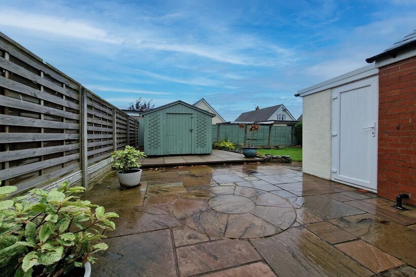 Step outside into the charming garden, where youll find a well-kept lawn complemented by a soothing water feature. Theres also a garden shed, providing additional storage space.