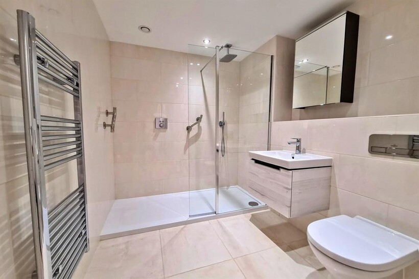 Finished to the highest standard, this beautifully appointed first floor apartment offers generous amounts of storage throughout the accommodation. The ensuite and main shower room are fitted with walk in showers, WC, wash hand basin and have tiled flooring and walls. The bedrooms are both doubles and have fitted wardrobes built in. The living room is light and bright and overlooks the front of the development and offers a private balcony. The kitchen is fitted with base units and drawers under a stone worktop complete with built-in appliances.